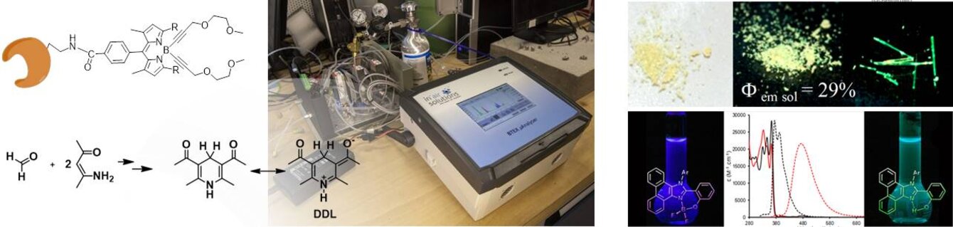 The research activities carried out within the Molecular and Analytical Chemistry Department focus on research in the field of luminescent compounds with innovations in the synthesis and molecular engineering of this family of molecules for applications ranging from biological/medical marking to optoelectronics and security marking. The work also aims to develop "innovative analytical methods" dedicated to the quantification of trace organic molecules in the environment, which involves (i) the search for new materials for sampling, (ii) the development of versatile or specific analytical methods for a pollutant or a family of pollutants, (iii) instrumental development, in particular via microfluidic devices. Fluorescence spectroscopy is a transversal theme. The department is composed of two teams that are very active in their field: