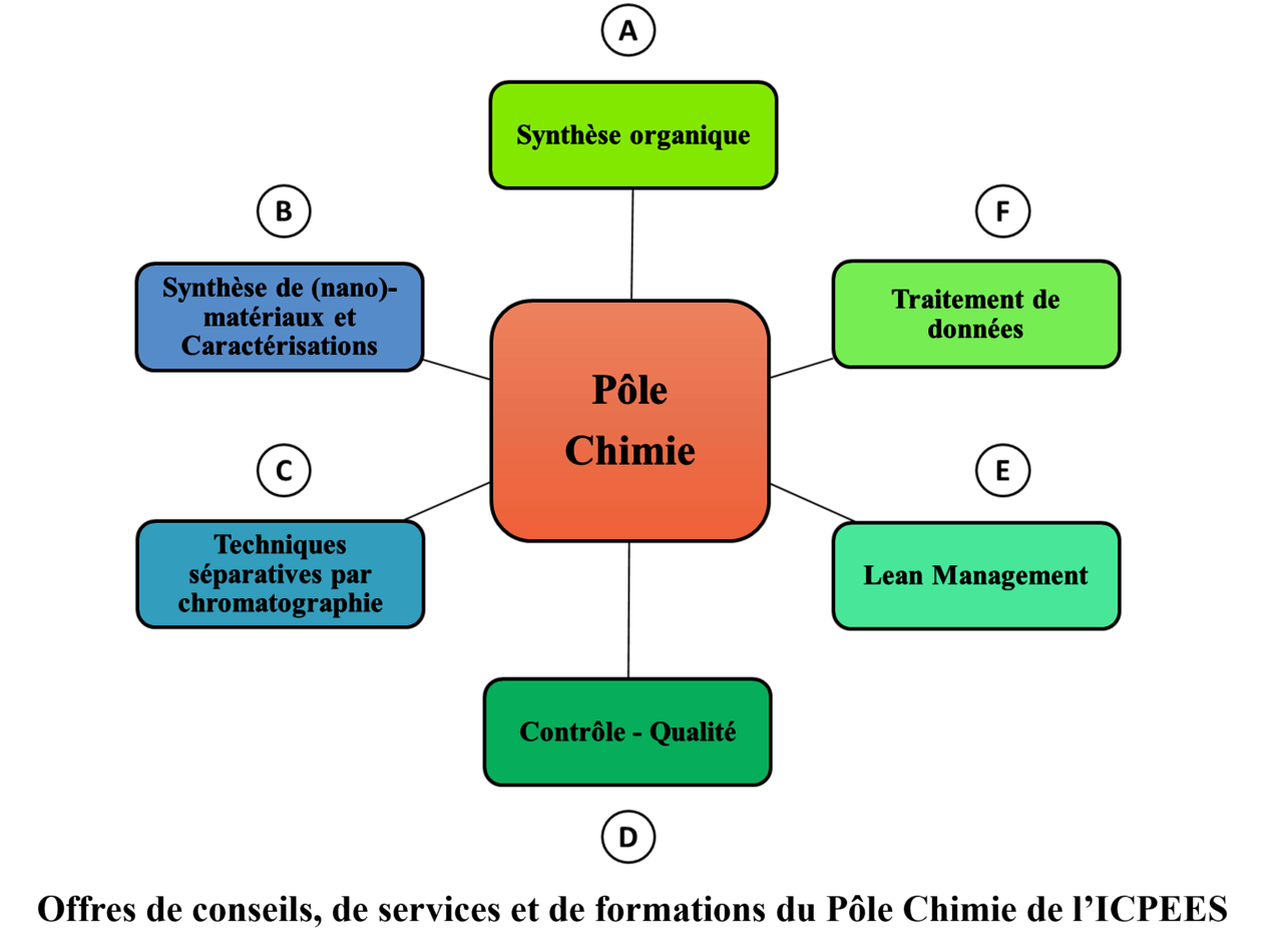 Les quatre membres du pôle de Chimie par leurs compétences variées offrent des conseils, des services et des formations aux personnels des trois départements scientifiques de l’ICPEES dans les domaines suivants :