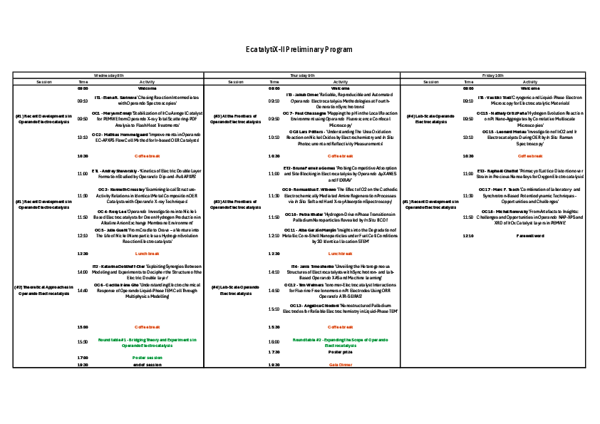 - How theoretical and computational work can be combined with operando approaches to provide new insights on electrocatalysts’ and interfaces properties in operation?